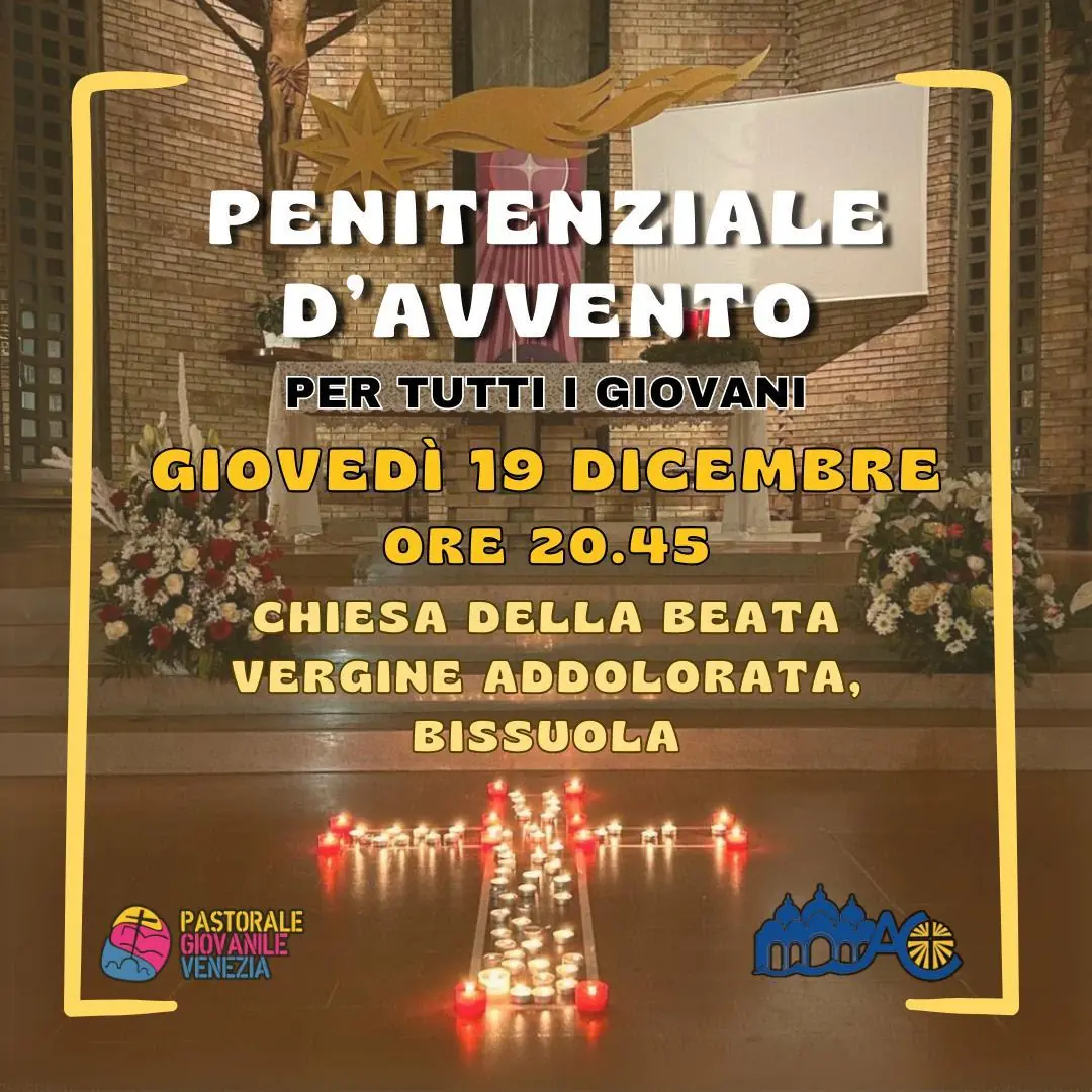 La Penitenziale di Avvento è un’opportunità rivolta a tutti i giovani della nostra diocesi che desiderano prepararsi a vivere il Santo Natale, celebrazione del Mistero dell’incarnazione di Gesù.
